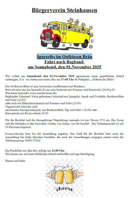 Werden Sie Mitglied im Bürgerverein und beteiligen Sie sich an unseren geplanten Veranstaltungen. Ein gemeinsames “WIR AUS STEINHAUSEN” macht unseren wunderschönen Ort noch lebenswerter. Gemeinsame Stärke bei regionalen Entscheidungen und eine noch bessere Nachbarschaft sind gute Gründe für eine Mitgliedschaft im Bürgerverein Steinhausen.